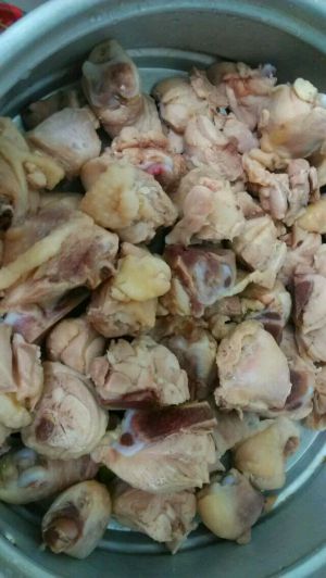 鸡剁成块,过水后冲洗干净备用