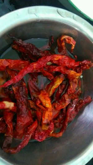 干辣椒和花椒粒用水泡一会