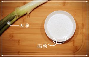用温开水和面,放在容器里15分钟。大葱切成葱花。