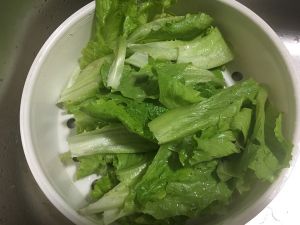 待面条熟时加入炒好的鸡蛋及生菜,翻几下即可关火,加入香菜葱末即可盛碗