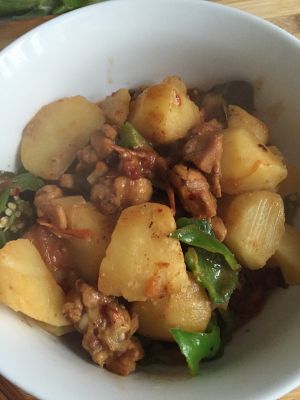 土豆是不可少的,许多人为了吃鸡里的土豆,居然把鸡肉都不吃了。一只鸡用2——3个土豆就行了,太多味道就不美了。土豆去皮切成筷子头厚的片,用清水冲去淀粉备用