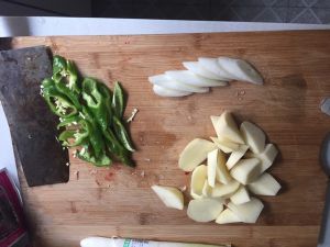 土豆切块 青椒滚刀块 葱头 超市买的宽手擀面