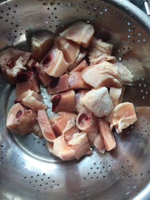 鸡腿切小块,超市都是冰冻的,影响味道。
