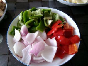 青红椒切块,葱头切块,备用!