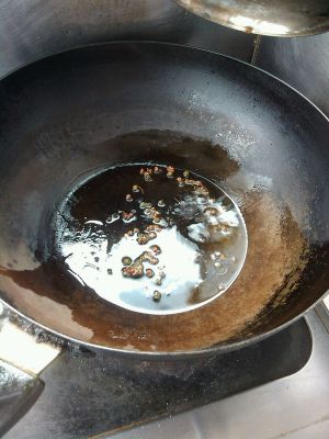 锅中加油,放入花椒,麻椒,炸香,捞出!