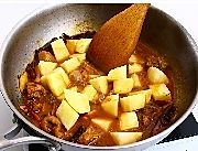 开盖加入土豆,如果汤汁少可以再适当的加些热水,再继续炖10分钟。
