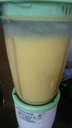 温水融化啫喱粉拌匀,倒入搅拌器中