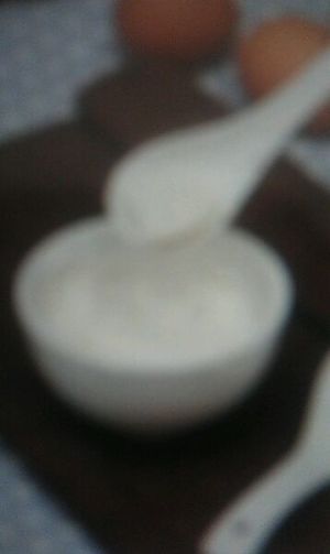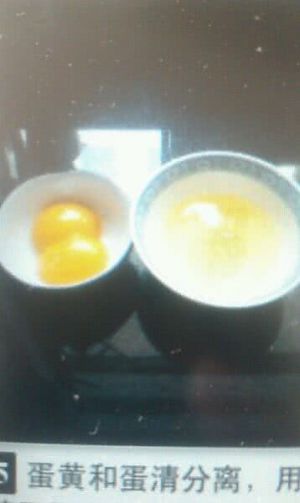 5.蛋黄和蛋清分离,用筷子把蛋清打散备用。