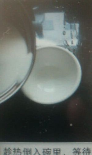 7.要慢慢倒,奶皮才会稳妥地躺在碗底。留下许牛奶滋润碗里的奶皮。