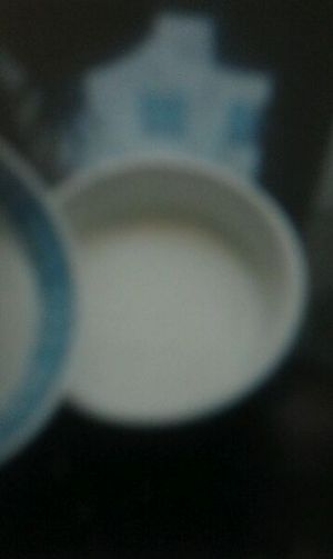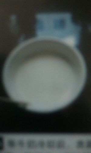 将加了蛋清的牛奶顺着碗边慢慢倒入原来的碗内,尽量让第一次奶皮浮起来。