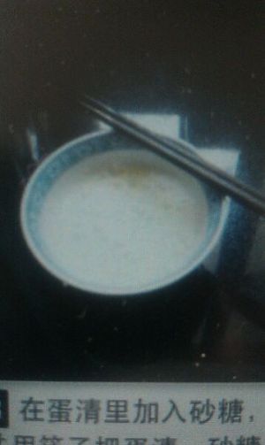 8.在蛋清里加入砂糖,并用筷子把蛋清,砂糖,牛奶搅拌均匀。