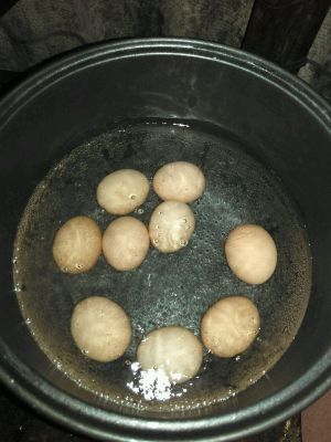 第一次,把鸡蛋煮半成熟