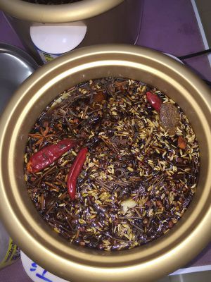 我还加了几块自家做的豆腐干放进去一起煮,大火煮5-8分钟之后转小火慢煮20分钟。关火之后放一晚上就可以了