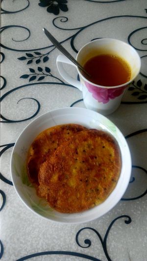 吃火锅的那种汤勺正好一勺一块,平底锅中火放入锅底一层量的油,煎到底面硬的时候可以翻面。