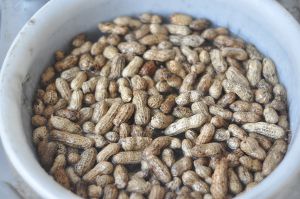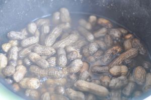 把煲好的盐水花生倒出来,沥干水份就可以享用了