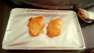 拿出烤盘,把鸡翅表面再刷一层腌料!再烤8~10分钟。