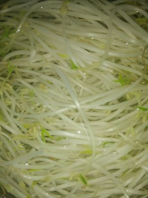 葱姜蒜切末,豆芽和娃娃菜洗净,在开水里桨烫一分钟捞出,放入一个大碗里