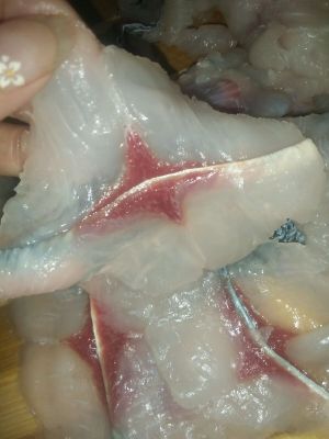 把鱼的主骨剔除来,骨肉分开,如图所示。