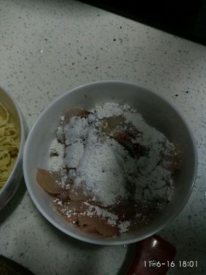 腌鱼 买的好人家的鱼料包,里面会有配套的三包(腌鱼包,煮鱼包,辣椒面),先用腌鱼包将鱼片腌制15-20分钟,其中加入姜,料酒,小葱一起腌制去腥