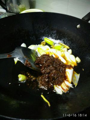 将辣椒、洋葱、花椒、豆瓣酱进行翻炒