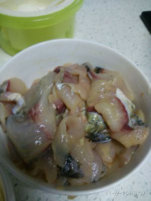 鱼切片用料酒、盐、少许酱油、花椒腌制
