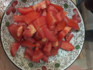 第一步(准备材料): 1、将番茄洗净切成小块。