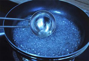 爆香后加入适量的清水,烧开,加入盐和料酒