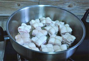 用细绳子扎起来,既为了好看又为了在做的过程在肉块造型不会走形,口感也会很好