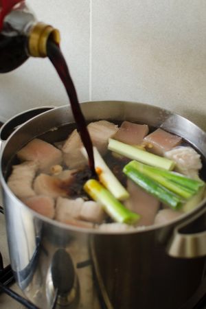 加生抽和大量的水。没过食材即可。(我没有加盐因为我们家的生抽本身咸味比较重。要放盐的记得斟酌)大火煮沸 中小火慢煮1小时然后开大火煮至汤汁浓稠即可。