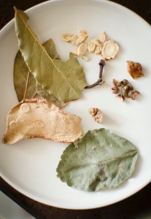 准备各种香料,蒜,辣椒,香叶,桂皮,冰糖