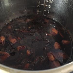 老抽上色后加水,开始炖了!这个时候可以削土豆皮,切块!