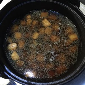 炖至汤汁还剩一半时加入鹌鹑蛋。