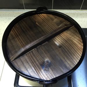 盖盖,大火,等待。中间偶尔翻炒一下,以免干锅。