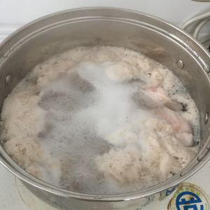 将炒锅内所有东西连稠带稀倒入高压锅,高压30分钟。关火,放气,开盖。
