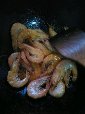 炒到虾变色,放点酱油,酱油放点就行,提味的。