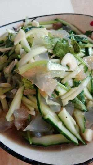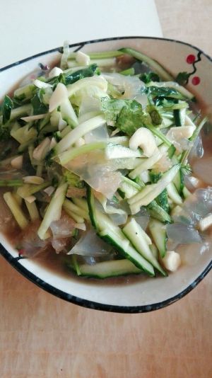 最后加入浸泡好的海蜇头搅拌均匀放入冰箱冷藏半个小时即可食用。