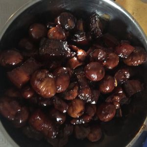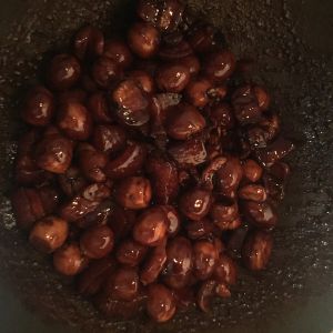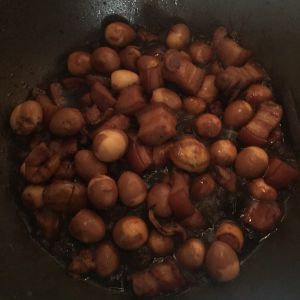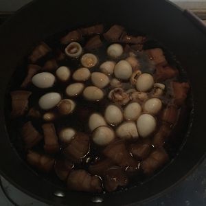 肉炖15分钟后放入栗子和鹌鹑蛋