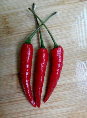辣椒,葱花切成小段备用