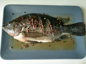 花椒,大料,桂皮,酱油,料酒,盐,加开水做成腌鱼料,花椒去腥排名第一!