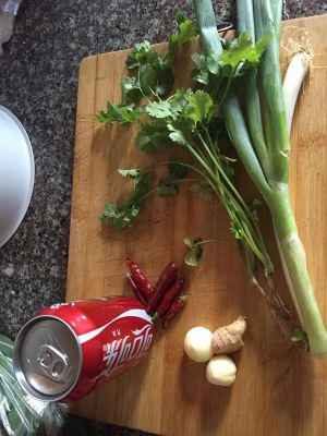 将大葱,蒜,生姜,干海椒、(香菜我是准备拿来装饰用的,个人爱好可放可不放…)准备好~大葱切小段、干海椒切小段,生姜蒜切末~