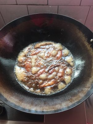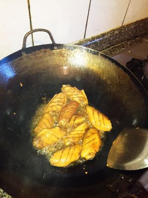 待油烧至八成热的时候放入中翅,炸至金黄色