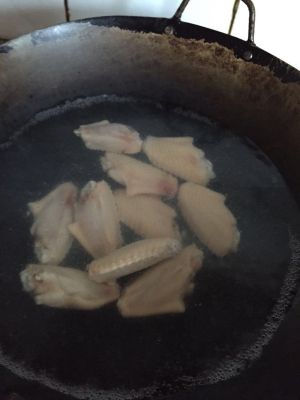锅里烧开水后将中翅下锅煮1分钟左右用盘子盛起来~