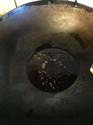 我省略了第一步,就是鸡翅用刀在鸡翅正背两面切开一刀,方便调味料入味。如果可以调味料涂抹均匀以后放入冰箱里冷藏,这样会入味会快速一些。 热锅倒油,油热以后,放入两片姜炒出香味