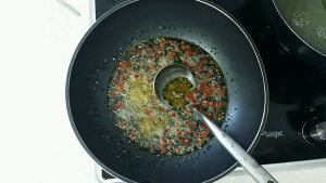 锅里辣椒油开火烧热