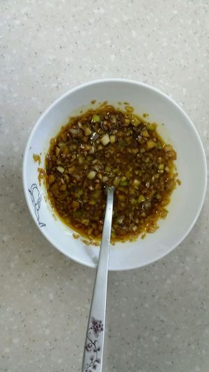 蒜末放入碗中, 加入适量的生抽、辣椒油等调味料;