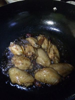 等鸡翅根软熟后,发大火收汁。