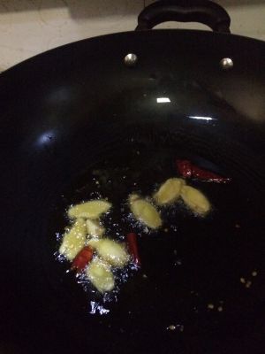 起油锅,加入姜片,干辣椒煸香