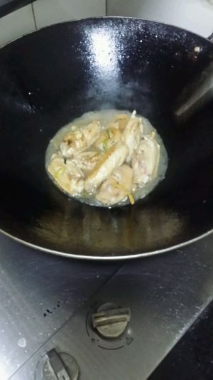 煎锅烧热放油,转小火,放入鸡翅煎至两面金黄,放姜,料酒,六月鲜酱油,适量盐翻炒上色