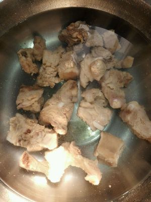 排骨浸泡出血水冲洗干净,冷水下锅;