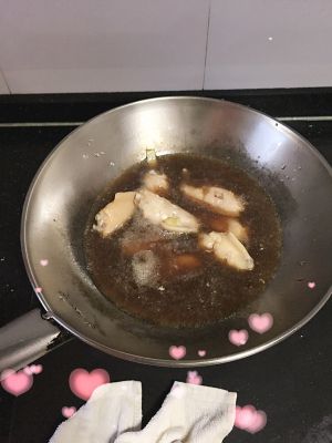 少量油,八角入锅,再煎香鸡翅后加入可乐,生抽少量中小火焖,最后收汁